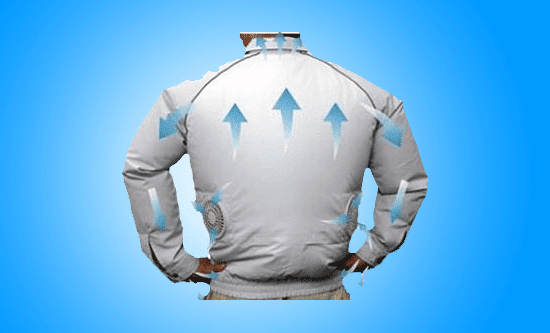 அந்த வகையில் கடுமையான வெயிலைச் சமாளிக்க புதிய வகை ஆடையை கண்டுபிடித்துள்ளனர். ஏ.சி. ஜாக்கெட் என்ற பெயரிடப்பட்ட அந்த ஆடையில் இரண்டு மிகச் சிறிய மின்விசிறிகள் [Tiny Fans] பொருத்தப்பட்டுள்ளன.