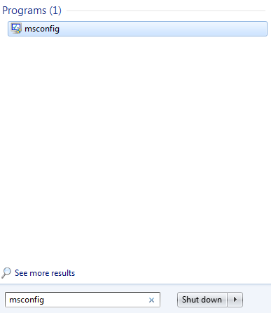 • Start பட்டனை அழுத்தி தோன்றும் சர்ச் விண்டோவில் ‘msconfig’ என டைப் செய்து, என்டர் பட்டனை தட்டவும்.