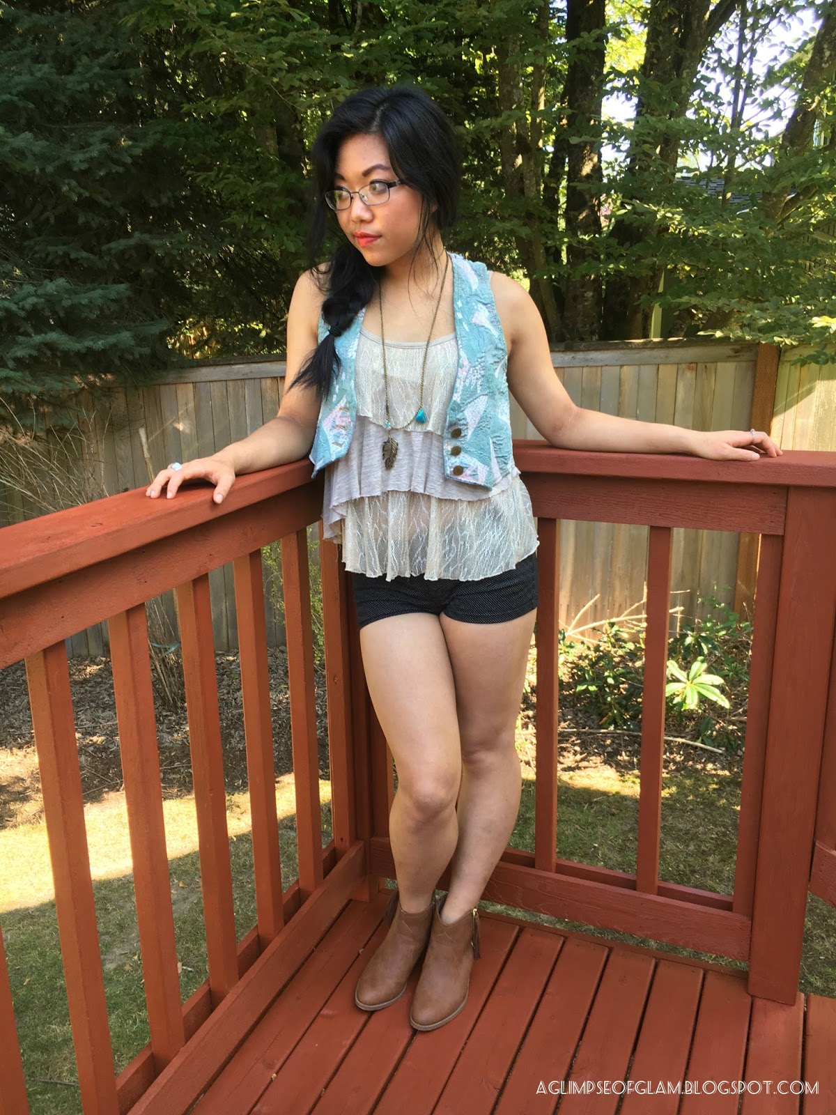I initially wanted to go for this blue circle skirt I had that would look perfect with the denim vest and brown booties. But, I remembered how concerts usually are like, and had I chosen the skirt, it wouldn’t ring true if I were to really attend a country concert. It just isn’t the most logical option to go with.  However, I still think that the overall look conveys my style with a country twist.